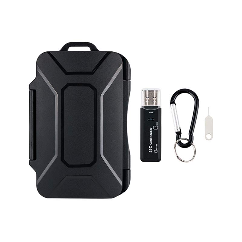 JJC MCR STS27 Safe Box für Speicher-Karten. Sicheren Transport inkl. SD- und Micro SD Kartenleser JJC USB SD MSD. Platz für 7 SD Karten, 16 TF, 2 Nano und 2 Micro Karten. Stabil, sicher und wasserresistent.